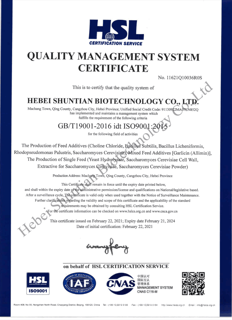 Tianjin Anqirui Technology Co.,Ltd . Это высокотехнологичное предприятие, специализирующееся на исследованиях и разработках, производстве, продажах и техническом обслуживании кормовых добавок. Оно является вице-председателем Ассоциации кормовой промышленности Цанчжоу и входит в число ведущих предприятий провинции Хэбэй. Компания расположена в городе Цанчжоу, провинция Хэбэй, что обеспечивает удобное транспортное сообщение с Пекином и портом Тяньцзинь. Она располагает передовым производственным оборудованием, цехом микробной ферментации, стандартной экспериментальной базой, командой квалифицированных научных исследователей и системой управления качеством, что гарантирует производство высокотехнологичной продукции.